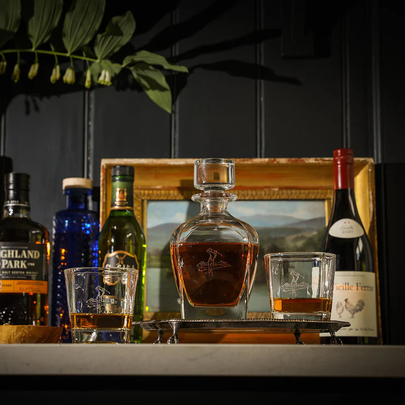 Elevate your bar with our Golf Decanter & Glass Set, combining the sophistication of golf with the indulgence of fine spirits. Each piece in the set is designed with intricate golf motifs, infusing your bar with a playful and elegant touch. Presented in a beautifully designed gift box, this set is an ideal present for golf enthusiasts and connoisseurs of fine spirits, blending style and functionality in a delightful way.
